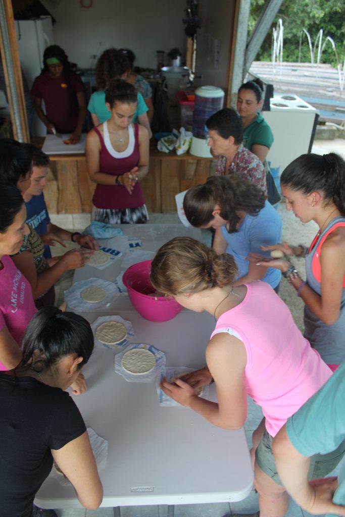After having the time to work on our independent projects from 1-4 PM, many of the associates of ASOMOBI and their families came together to give us a very special tarde cultural. With the associates came a number of little kids who brought an extra liveliness to the party as they ran about underfoot. During this time, the associates taught us how to make typical Tico dishes such as tortillas, gallo pinto, and patacones, which we then all ate together for dinner. It was delicious, and we all learned a huge amount about what it takes to cook in a truly Tico fashion.
